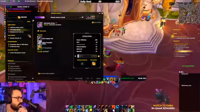 08:20:42Diskussion über die Kosten professioneller Ausrüstung versus grüner Gegenstände. Es wird die Entscheidung getroffen, bestimmte Handwerksfertigkeiten wie Alchemie zu vernachlässigen und sich stattdessen auf Verzauberung zu konzentrieren. Im Detail werden die Stat-Boni von Runen und Refugien bewertet, wobei die Frage aufgeworfen wird, welche Stat für das Entzaubern von epischen Gegenständen am sinnvollsten ist. Es kommt zu einer Verwirrung bezüglich eines Set-Bonus für Mage-Items, die durch das Crafting von Arcano-Stoffteilen entstehen soll, letztendlich aber auf eine Fehlidentifikation zurückzuführen ist.