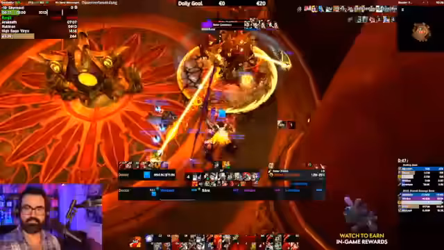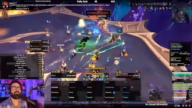 05:30:46Der Streamer diskutiert die Leistung seines Hunters und ist überrascht von den hohen Simulationszahlen, insbesondere bei BM. Obwohl er MM spielt, ist BM mit MM-Gear konkurrenzfähig. Mit der Gilde Echo geht es in den Voice-Chat und in den Heroic-Raid. Nach einem anfänglich fehlgeschlagenen Pull, bei dem wichtige CDs zu spät gezogen wurden, beginnt der Raid ernsthaft. Der Streamer analysiert seine Fehler und passt den nächsten Pull an.