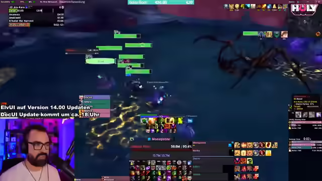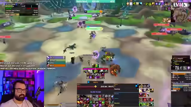 03:38:50Es wird angekündigt, dass Lucky in Kürze Zeit hat, um über das LFUI Update zu sprechen, da dort aktuell etwas defekt ist, was behoben werden muss. Es wird erklärt, dass Lucky einer der Hauptverantwortlichen für LFUI ist. Jemand fragt, wie man Plater so einstellt, dass die Nameplates nicht übereinander liegen. Daraufhin wird verwiesen auf einen Guide und erklärt, dass dies mittlerweile eine Standard WoW-Funktion ist (Nameplate-Motion-Type: Stacking statt Overlapping), die aber durch Plater überschrieben werden kann. Es wird sich über das Elfway-Update und die Änderungen bezüglich FPS gefreut. Es wird erwähnt, dass bei dem Sprecher alles kaputt ist und er Lucky um Hilfe bittet, bevor er selbst anfängt, darin herumzuwurschteln. Es wird festgestellt, dass etwas kaputt ist, aber es gefixt werden kann und ein Update rausgebracht werden muss. Es wird das Problem beschrieben, dass die Debuffs nicht mehr sichtbar sind, obwohl die farbliche Einteilung noch erkennbar ist.