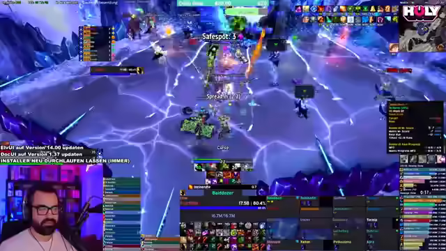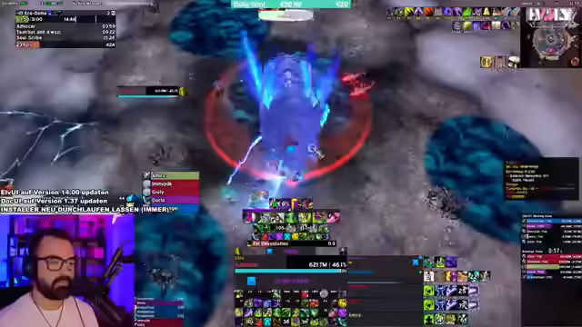 08:43:10Es treten Probleme mit Addons auf, insbesondere mit der Anzeige von Debuffs, was die Koordination erschwert. Ein Update hat die Anzeige von Stacks entfernt, was das Callen für Winterlust beeinträchtigt. Die Spieler versuchen, das Problem zu beheben, indem sie Einstellungen überprüfen und Screenshots austauschen. Es gibt auch Schwierigkeiten mit den Mechaniken des Bosskampfes, insbesondere mit der korrekten Positionierung und dem Soak von Adds. Die Spieler sind frustriert über die zufälligen Zielzuweisungen und die hohe Frequenz bestimmter Mechaniken. Trotz der Herausforderungen versucht die Gruppe, sich anzupassen und die Taktik zu optimieren. Die Kommunikation ist entscheidend, um die Mechaniken zu meistern und den Boss zu besiegen. Es wird auch über die Bedeutung von persönlichen Cooldowns und die Notwendigkeit gesprochen, Adds zu verlangsamen. Die Spieler müssen sich besser koordinieren und sicherstellen, dass sie die Mechaniken korrekt ausführen, um erfolgreich zu sein.