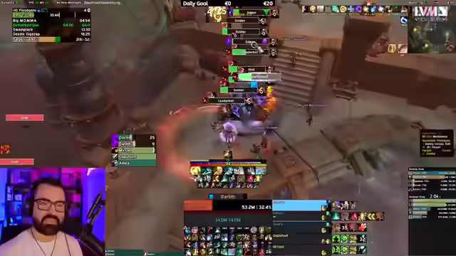 05:40:25Der Streamer erklärt, dass der schwerste Teil des Dungeons bevorsteht und beschreibt detailliert, wie die Mobs gepullt und kontrolliert werden müssen, einschließlich des Einsatzes von Silence, Stuns und Knockbacks. Er betont, dass dieser Pull nur mit bestimmten Fähigkeiten wie The Rapping Shot oder Grips möglich ist und warnt davor, dass andere Tanks diesen Pull nicht ohne die entsprechende Kontrolle nachahmen sollten. Es wird überlegt, wie die Kontrolle über die Mobs aufrechterhalten werden kann, insbesondere im Hinblick auf CC und Bloodlust. Der Streamer gibt Anweisungen, wer wen unterbrechen soll und wie die Gruppe zusammenarbeiten muss, um erfolgreich zu sein. Es kommt zu einem Todesfall in der Gruppe, aber der Kampf wird fortgesetzt. Der Streamer gibt humorvolle Kommentare von sich und verspottet einen Mitspieler für dessen Schaden. Am Ende wird der Dungeon erfolgreich abgeschlossen.