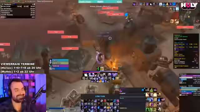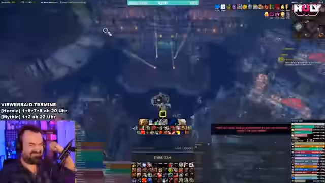 09:56:12Das Gameplay des Streams konzentriert sich auf den Fortschritt in einer Höhle (Delph), wobei der Streamer und seine Gruppe Mobs und Bosse bekämpfen. Es kommt zu technischen Problemen und unkoordinierten Aktionen, wie versehentlichem Ziehen von Bloodlust und unklaren Pull-Anweisungen. Während des Kampfes gegen einen Schrieker-Mob wird der Streamer von seinen Cooldowns getrennt und stirbt, was eine strategische Neuausrichtung erfordert.
