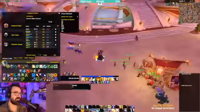 02:55:00Der Stream wechselt zu praktischen Aktivitäten im Spiel. Es wird eine Dungeon-Gruppe für den Mythic Plus Key 'Windwander' zusammengestellt und ein geplanter Raid 'Dream Rift Mythic' angekündigt. Die Anforderungen hierfür sind ein Item Level von mindestens 2.650. Anschließend wird das Addon Plater diskutiert. Der Streamer hat auf Plater 11.UI gewechselt, weil wichtige Probleme im alten Addon, wie fehlerhafte Tank-Nameplates, gefixt wurden. Er erklärt, dass Plater die Darstellung von Debuffs nicht zuverlässig umsetzen kann, weshalb er auf eine Alternative umgestiegen ist, die sich besser an die Blizzard-Schnittstelle anpasst.