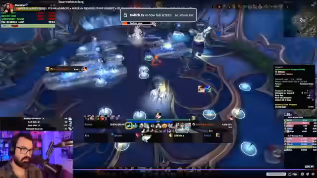 08:37:00Der Kampf steigert sich in ein Chaos, das als 'geil' und 'geisterkrank' beschrieben wird. Es gibt einen Soft-Enrage-Effekt, bei dem der Raum zusammenschrumpft, was den Kampf schwieriger macht. Streamer doctorio hofft, dass der Boss Anduin-Mechaniken implementiert, bei denen eine Hälfte der Gruppe schwarz und die andere weiß sein muss, ohne sich zu berühren. Dies würde den Boss extrem herausfordernd machen und Koordinationsfehler bestrafen.