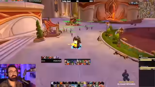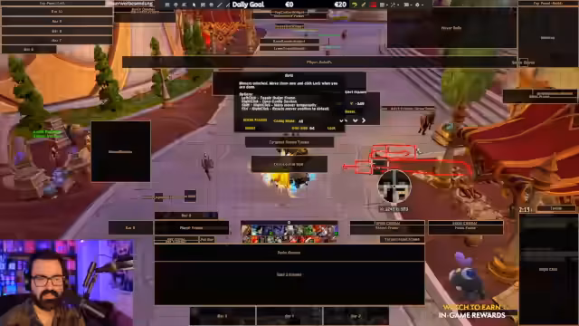 00:02:00Der Stream beginnt mit der Vorstellung verschiedener bekannter Gesichtern der Community, darunter Bart, Egan und Steve. Anschließend wird über das Crafting von Schilden gesprochen und die Teilnahme an einem Raid an Penier, Hubert erwähnt. Der Streamer lädt die Zuschauer ein, eine Gruppe für Questing, Custom oder Dormarion Assault zu bilden und gibt an, dass er heute Abend eventuell einen Offer bei Dream Rift Mythic mitlaufen wird, da seine Gilde ihn nicht mitgenommen hat.