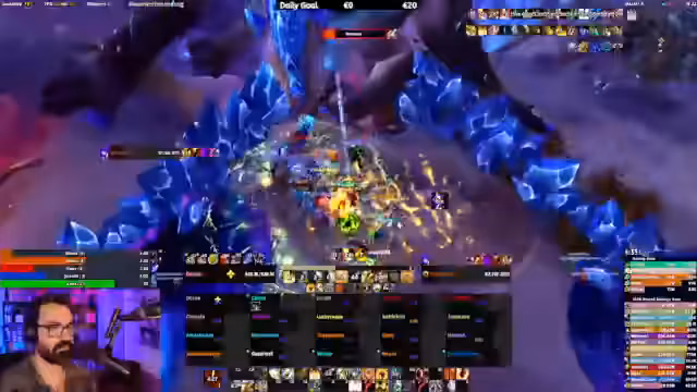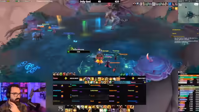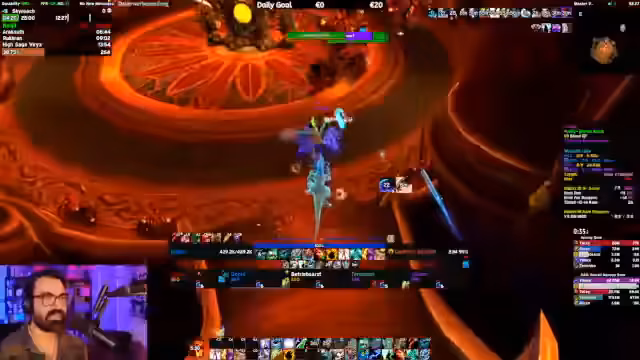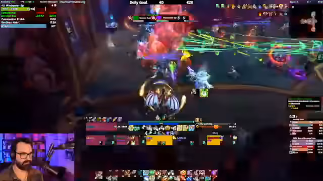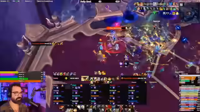 04:14:18Nach einigen erfolgreichen Versuchen konzentriert sich der Streamer auf fortgeschrittenere Taktiken. Er betont die Bedeutung der Koordination zwischen den Gruppen, insbesondere bei den Dispels und dem Tanking. Er gibt spezifische Anweisungen für die verschiedenen Rollen, wie z.B. für die Healer, die für Dispels zuständig sind, und für die Tanks, die die Adds unter Kontrolle halten müssen. Der Streamer arbeitet daran, die Effizienz der Gruppe zu steigern und weniger Wipes zu erzielen.