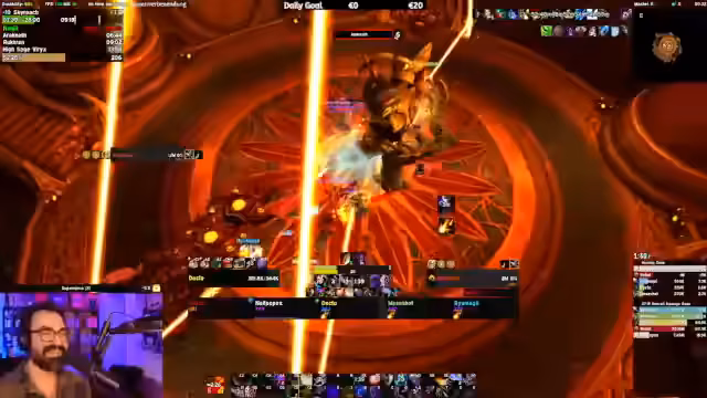 11:35:23Der Streamer teilt seine Erfahrungen in Raid-Situationen und arbeitet eng mit seiner Gruppe zusammen. Es werden gemeinsame Strategien entwickelt, wie zum Beispiel die korrekte Platzierung von Fähigkeiten und Management von Ressourcen. Der Streamer betont die Wichtigkeit der Kommunikation und Zusammenarbeit im Raid, um herausfordernde Bosse besiegen zu können.