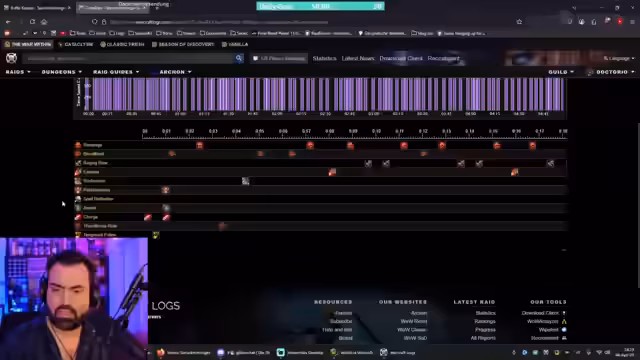 03:27:08Auf Bitte eines Viewers wird eine detaillierte Log-Analyse eines Fury Warriors durchgeführt. Der Streamer identifiziert mehrere Kernprobleme: Eine ineffiziente Priorisierung von Fähigkeiten, zu viel Fokus auf Raging Glow zu Lasten von Bloodthirst, schlechtes Ressourcenmanagement mit Rage-Overcapping und eine unzureichende Enrage-Uptime. Er schließt daraus, dass der Spieler grundlegende Fury-Gameplay-Prinzipien nicht verstanden hat und sein Schaden daher weit unter dem Potenzial liegt.