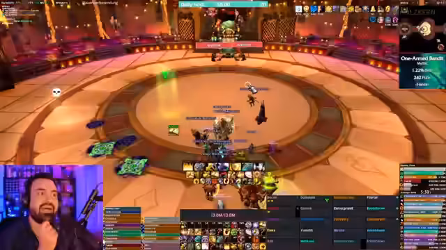 00:10:21Nach den Vorbereitungen startet der erste Mythic+ Key. Der Streamer agiert als Tank und erklärt seine Mechaniken, wie z.B. die Manaverwaltung für Nicht-Mana-Klassen und die Nutzung von Purge. Während des Laufs gibt er Tipps zur Routenführung, zur Aggro-Steuerung und zu den Klassenmechaniken. Er lobt erfahrene Spieler wie Flumi für ihre Qualität und kritisiert ineffizientes Gameplay. Der Fokus liegt auf einer Kombination aus Spielspaß und der Demonstration von Core Mechanics.