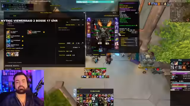 00:00:48Der Stream beginnt mit technischen Anpassungen wie dem Ändern der Überschrift und dem Eintragen von Geistern. Der Streamer grüßt die eingetroffenen Zuschauer, darunter bekannte Namen wie Thunder, René und Daniel, und erwähnt, dass er 10 Stunden geschlafen habe, was ihm eine hohe Sanity von 5000 gebracht hat. Er sieht den Tag positiv voraus und ist bereit, mit den Mythic+ und Raid-Guides zu beginnen. Die anfängliche technische Hektik deutet auf einen unkomplizierten Start des Contents hin.
