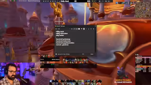 00:00:34Der Stream beginnt mit der Begrüßung der ersten Zuschauer, die früh erscheinen. Zandronov, Mulan und Diablo werden namentlich erwähnt. Gleichzeitig gibt es eine erste Ankündigung zum Sammeln von todemark, einem Rohstoff, der im weiteren Verlauf benötigt wird. Die Stimmung ist fröhlich und interaktiv, mit vielen persönlichen Anreden im Chat, was eine entspannte und familiäre Atmosphäre etabliert.