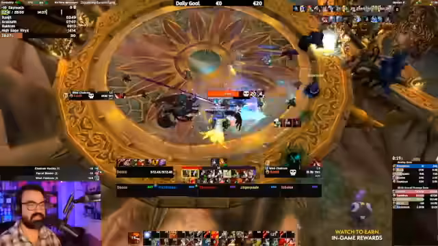 01:38:20Nach einer kurzen Pause zur Sicherung des Gears plant der Streamer einen mutigen Pull über die gesamte Plattform. Die Gruppe setzt auf einen wellenartigen Ansatz, wobei der Jumoodle-Kooldown als wichtiger Faktor für den Erfolg gilt. Die Kommunikation wird intensiviert, um Stuns nicht zu verwechseln und stattdessen Kicks als primäre Interrupt-Methode zu nutzen. Während des laufenden Dungeon-Zugs finden zahlreiche kurze Begrüßungen und Unterhaltungen mit Chaternfolgern statt, was eine lockere und interaktive Atmosphere schafft.
