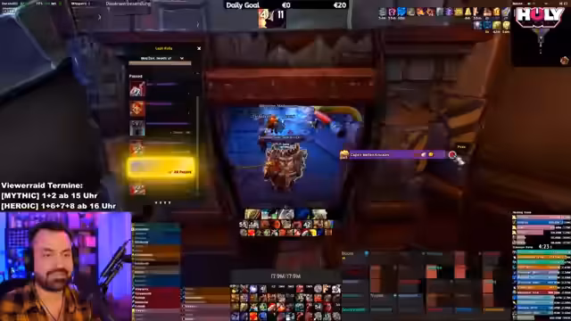 03:04:36Vorbereitungen für einen Heroic-Raid werden getroffen, bei dem eine Gruppe von Heilern und Tanks benötigt wird. Die Suche nach verlässlichen Spielern gestaltet sich schwierig, wobei der Streamer bestehende Kontakte nutzt und gleichzeitig auf neue Anmeldungen hofft. Parallel dazu wird über die notwendige Ausrüstung gesprochen, insbesondere um 'House of Cards' auf dem Warrior-Tank zu aktivieren. Die Kommunikation über Voice wird als optional, aber nützlich für die Koordination angesehen. Es wird eine planerische Herausforderung, die Gruppe rechtzeitig zusammenzustellen und die Rollen zu besetzen.