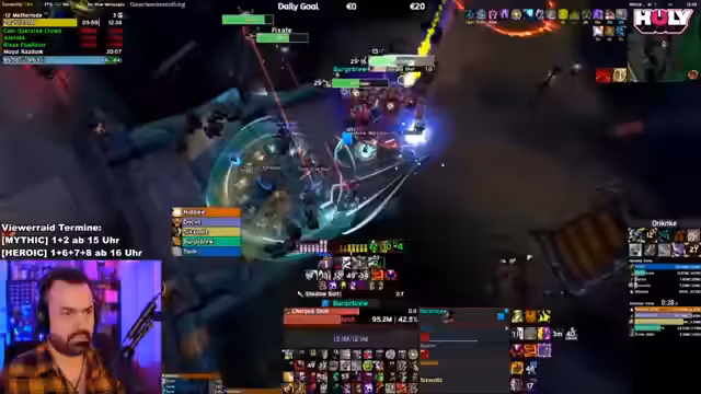 02:06:58Stream-Teilnehmer werden aufgefordert, ihre Spielaktivität auf Raider.io zu überprüfen, um vergangene Leistungen einzuschätzen und zu beweisen, dass sie in der Gruppe mithalten können. Da der Streamer an Terminen festhängt, ist eine sofortige Analyse nicht möglich, was zu Zweifeln an der Verlässlichkeit von Spielern führt, die nicht aktiv sind. Gleichzeitig wird Shadow im M+ als unbekannte Klasse eingestuft, deren Potenzial gespannt erwartet wird. Zusätzlich kommt es zu Gruppenwechseln, bei denen Heiler und DDs neu gesucht werden, um die Anforderungen der höheren Schwierigkeitsgrade zu erfüllen.