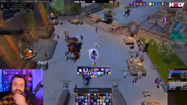 01:48:01Der Streamer wechselt die Rolle von Heiler zu Tank und baut eine neue Gruppe für einen weiteren schnellen Mythic+-Key. Er nutzt dieses Gespräch, um über sein Addon 'Vocal Raid Assistant' zu informieren. Er erklärt, dass es sich hierbei um ein highly personalized Tool handelt, da jeder Spieler die Ansagen individuell für seine Rolle und Bedürfnisse konfigurieren muss. Er beantwortet Fragen von Zuschauern zu seiner Ausrüstung, seinen Makros und behebt technische Probleme innerhalb der Gruppe, um einen reibungslosen Start des Dungeons zu gewährleisten.