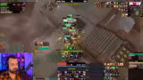 01:03:54Nach erfolgreichem Abschluss des 'Giga-Full-Clear' in Stormwind hat der Streamer fünf Masken gesammelt und alles Notwendige erledigt, um seine wöchentlichen Ziele zu erreichen. Er wendet sich nun wieder seinem Charakter, einem Fury-Krieger, zu. Es gibt eine neue Ankündigung, dass ab Mittwoch Buffs für Fury kommen, was ihn dazu veranlasst, seine Simulationswerte neu zu berechnen. Daraufhin startet er einen schnellen Mythic+-Dungeon (Darkflame Cleft), wo er als Heiler agiert und strategische Tipps für das optimierte Pullen und das Management von Cooldowns gibt.
