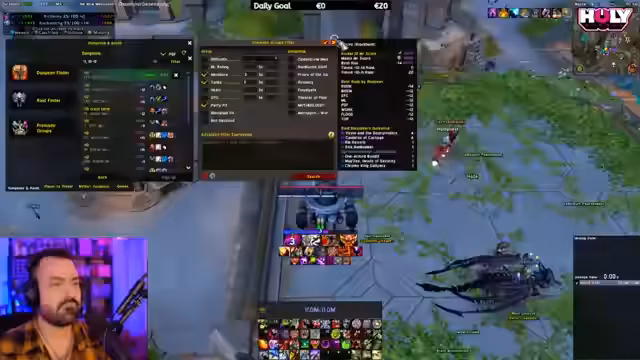 04:08:29Der weitere Tagesplan wird umrissen. Der Abend ist für die Gilde reserviert, die eventuell für einen Raid benötigt wird. Daher werden Pläne für M+-Keys lockerer gefasst, wobei möglicherweise versucht wird, einen 3-5er Key zu spielen. Für den Hunter wird geprüft, ob noch Crests für die Herstellung von Schultern benötigt werden. Parallel dazu wird der weitere Schlachtzug für den nächsten Tag (Chips Raid) vorbereitet, bei dem die Veredelung von Gegenständen im Fokus steht. Der Streamer wechselt erneut die Rolle, um eine funktionierende Gruppe zusammenzustellen und noch eine Runde im M+ zu spielen.