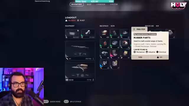 04:15:13Der Streamer beginnt mit der Auseinandersetzung mit der Geschwindigkeit und Mechanik von Arc Raiders, die für ihn als Boomer zunächst demotivierend wirkte. Er versucht, dem Spielbehangern durch eine klare Strategie zu begegnen. Der Fokus liegt darauf, Loot zu sammeln und den Inventarplatz effizient zu verwalten. Er versucht, verschiedene Gegenstände zu verkaufen, um Platz für wichtigere Ausrüstung zu schaffen, und erkundet die Optionen, Free Loadout Augments bei Händlern einzutauschen oder zu verkaufen, um seinen Charakter zu verbessern.