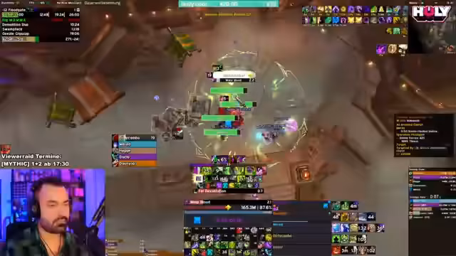 06:21:09Kurz nach 15 Uhr richtet sich der Fokus darauf, einen Rating für zwei Bosse im Mythic-Modus zu erreichen. Ein Diskussion über die Eignung eines Spielers namens Hans-Günther entsteht, der als nicht erfahrener Raider gilt und keine Raid-Erfahrung hat. Der Streamer ist skeptisch, ob jemand mit nur M+-Erfahrung die nötige Awareness für die Bosse mitbringt, um die Gruppe nicht zu gefährden.