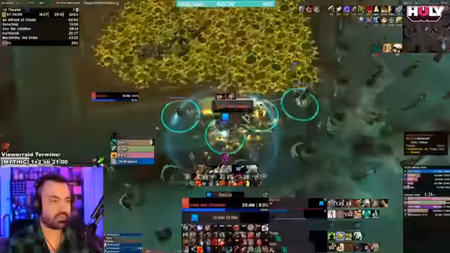 00:35:15Der Streamer startet einen M+ Dungeon und sucht nach einer Gruppe. Er findet einen guten Tank und einen Heiler. Während des Spiels werden komplexe Mechaniken wie Kettenladungen (Chains) von Hobgoblins, Doppelattentate und der Gebrauch von externen Fähigkeiten und persönlichen Notfallfähigkeiten besprochen. Der Streamer lobt die Awareness der Gruppe und deren gute Execution. Es kommt zu einer Diskussion über Mana-Management und die Notwendigkeit von CDs (Cooldowns).