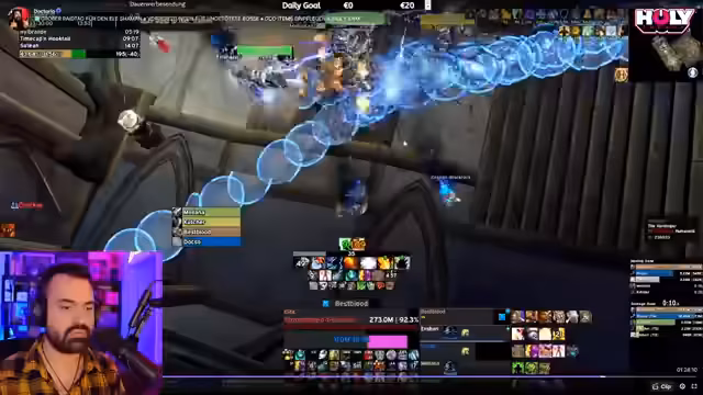 10:10:24Der Streamer gab einen Überblick über den Fortschritt verschiedener deutscher Gilden in der aktuellen Raid-Saison und verglich deren Leistungen. Bei eigenen Versuchen erzielte er auf Ele-Schamane überwiegend hohe Log-Werte, zeigte aber auch Fehlersituationen auf, bei denen falsche Timings zu Uptime-Verlusten führten und das Ergebnis negativ beeinflussten, besonders beim Boss Fractalus.