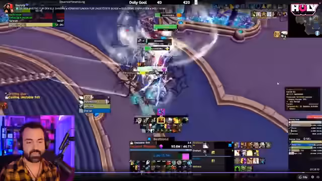 08:24:04Es wird festgestellt, dass jetzt die Zeit erreicht ist, wo genug Leute da sind, die wissen, wie die Dungeons funktionieren und einigermaßen Gear haben. Es wird erklärt, dass nach Hall of Fame für zwei Wochen Highlife ist und danach BW dead ist. Der endgültige Tod ist viel krasser, weil Ende des Addons. Der Streamer will für diesen Zeitraum ein alternatives Game zum Mainstream-Content machen und überlegt, Rust oder Leak zu spielen. Es wird angekündigt, dass die Zuschauer dem Streamer beim Rush Climbing zusehen können und dass er in League komplett kacke ist. Es wird überlegt, Strukturen, die in WoW erklärt werden, anzuwenden, um sich in anderen Bereichen zu verbessern. Der Streamer sucht Spacken für Joint Trade und Mia Wallace bekommt den Auftrag, Champion von Azeroth. Es wird nach dem Gefühl gefragt, wann man die Tali-Di wechseln würde und ob Raid-Bots einfach von Stats gehen. Es wird Raidbots verteidigt und gesagt, dass sie sich nächtlich den Arsch aufreißen. Der Streamer kauft Ringe und Tricks für jemanden und sagt, dass man nicht aufs Item Level oder den Preis gucken soll. Es wird über Item-Level und falsche Armschienen diskutiert. Der Streamer fragt Vellm, was in seiner Vault war und bittet um Sword Buff. Es wird festgestellt, dass Item Level 704 Big Blast ist und Shield of the Riders auf GCD sein sollte. Es wird überlegt, Dark Ranger auszuprobieren, aber Sentinel ist Arsch. Es wird über Transmogs und Waffen diskutiert. Es werden zwei DDS gesucht, die die beiden hier Nero will. Es wird über Key gesprochen und wer von der Committee ist. Es wird über Priory oder Vlad diskutiert und Priory gegeben. Es wird Werbung für einen Auftritt am 9. gemacht. Der Damage ist big und Schamana ist broken. Alle Targeted Kicks gehen auf Amira, es ist insane. Es ist legit groupwork hier gerade. Alle Cards auf Amira, legit alles. CC, Stunts, Grips, es ist so geil. Interrupts. Beste.
