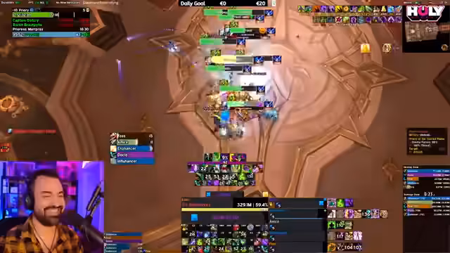 05:33:25Der Streamer kommentiert, dass ein Abschnitt im Spiel schneller geht und dass ein Slow-Effekt verschwunden ist. Es wird festgestellt, dass ein Boss fehlt, weil Echo nicht mehr da ist. Der Streamer scherzt über einen möglichen Wutausbruch eines dänischen Spielers, weil er kein P.I. bekommen hat. Er äußert Bedenken wegen möglicher RSI-Beschwerden und scherzt über einen Herzinfarkt. Es wird über die Verwendung von Mechanics und Forge gesprochen. Der Streamer betont, dass er nicht gestunt wurde und dass er noch Leute hat, die Heroic Boops haben. Es wird diskutiert, was mit dem Tank und dem Boss zu tun ist, einschließlich Taunt-Swaps während bestimmter Zauber. Der Streamer erwähnt, dass Fracture auf Mythic auf den Raid gehen muss und dass die Dott schmerzhaft ist. Es wird über das Ausweichen und den Einsatz verschiedener Fähigkeiten gesprochen. Der Streamer kommentiert, dass die Arena kleiner wird und fragt, ob man in den Stasis auf dem Boss gehen kann.