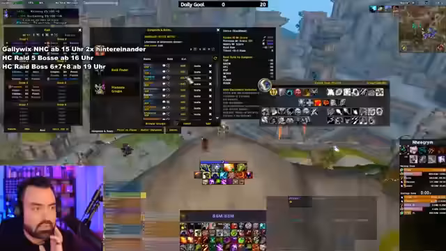 01:24:58Es wird entschieden, dass Crepbox den Gegenstand erhält, und es wird ein weiterer Run direkt im Anschluss geplant, um Zeit zu sparen. Der Streamer erklärt, dass er manchmal auf Gegenstände würfelt, die er nicht benötigt, um sie fair verteilen zu können. Ein neuer Run wird vorbereitet, wobei betont wird, dass die Spieler keine 'Pfosten' sein und nicht herunterfallen sollen. Ein Warlock mit Notiz wird für die Gruppe gesucht, und es wird sich über die hohe Anzahl an Anmeldungen gewundert. Es wird klargestellt, dass Spieler sich mit ihrem Namen anmelden sollen und nicht nur 'Druck' angeben sollen. Die Gruppenzusammenstellung wird optimiert, wobei ein Warlock und Spieler mit hohem Item-Level bevorzugt werden. Ein Spieler wird abgelehnt, weil er vergessen hat, dass er bereits eine ID hat, und es wird betont, dass man andere nicht mit unnötigen Nachrichten belästigen soll. Trey gibt Bescheid, dass er in der Gruppe ist, und es wird überlegt, welche Klasse noch benötigt wird, wobei Schamane, Warlock und Mage als wichtig erachtet werden. Es wird ein Stream-Shot von einem Blutwurz-Link angefordert und sich über die hohe Soundbelastung in WoW beschwert, insbesondere durch WeakAuren in Raids. Die verfügbaren Tanks melden sich, und es wird der Blutdruck des Streamers als Problem festgestellt.