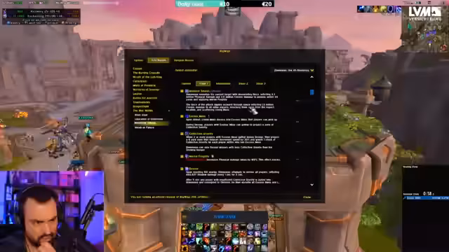 00:03:20Der Stream beginnt mit der Ankündigung eines baldigen Updates für den ElvUI Filter von Doctorio. Wichtig für die Nutzer ist die Aufforderung, den neuen Installer auszuführen, sobald dieser veröffentlicht wird, um alle Funktionserweiterungen und Bugfixes zu erhalten, einschließlich einer neuen Powerbar-Anzeige und verbesserter Filter, die Lags reduzieren sollen. Der Release wird voraussichtlich am Montag erfolgen.