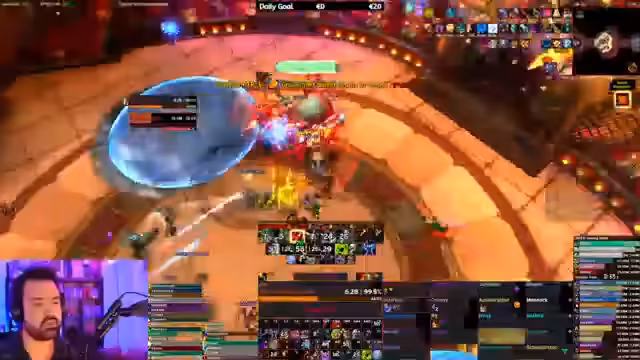 05:53:31Der Streamer analysiert verschiedene Raid-Taktiken und beschreibt die Unterschiede zwischen den Gilden. Er erwähnt, dass verschiedene Gilden unterschiedliche Strategien anwenden, wie z.B. halbe Cycles mit hohem Calamity-Buff statt voller Cycles. Besonders wird die Taktik beschrieben, bei der die Froschblätter aktiv zur Hotzone laufen und die Froschbiester spawnen. Es wird auf die Wichtigkeit der richtigen Einsatzzeit von Fähigkeiten und Cooldowns eingegangen, auch im Raid-Kontext, im Gegensatz zu Mythisch-Plus.