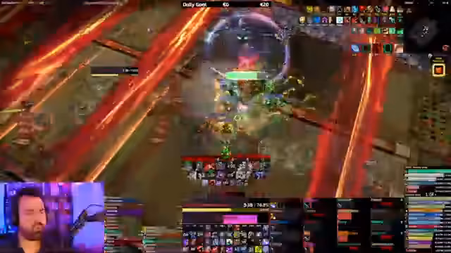 04:12:58Es werden verschiedene Taktiken getestet, um die Mechaniken des Bosses meistern zu können. Der Streamer beobachtet, wie die Gilden die Elementare positionieren und wie sie mit dem Problem des stacking Buffs umgehen, der entsteht, wenn die Schamanenseite zu oft getriggert wird. Es wird auch die Entdeckung diskutiert, dass der Frontal die Minen auslösen kann, was die Taktik grundlegend verändert.