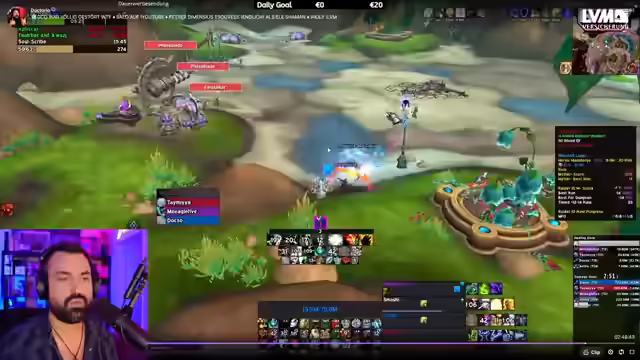 Doctorio taucht in World of Warcraft ein, optimiert den Ele-Schamanen durch Crest-Sammeln in Dungeons. Es folgen Diskussionen über Klassen, Strategien und die Vorbereitung auf den mythischen Dimensius-Kampf. Erfolgreiche Runs, Item-Verbesserungen und detaillierte Taktikbesprechungen prägen den Fortschritt. Der Streamer analysiert Spielweisen, gibt Tank-Tipps und passt Raid-Strategien an.
