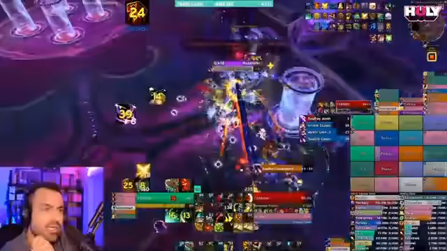 05:58:31Auf dem Mythic-Schwierigkeitsgrad treten zusätzliche Mechaniken auf. So müssen sich bestimmte Spieler hinter schwarze Flächen stellen, um die Arcane Manifestations zu schwächen, was im Heroic-Modus nicht nötig ist. Die Arcane Echoes müssen getrennt von dem Haupt-Boss getankt werden, da sie sich sonst gegenseitig buffen. Der Streamer hebt hervor, dass diese Mechaniken den Boss deutlich komplexer machen und besonders Caster-Klassen benachteiligen. Die Anordnung der Collectors scheint fest zu sein, und die Ads spawnen in einem vorhersagbaren Muster um die Spieler herum.