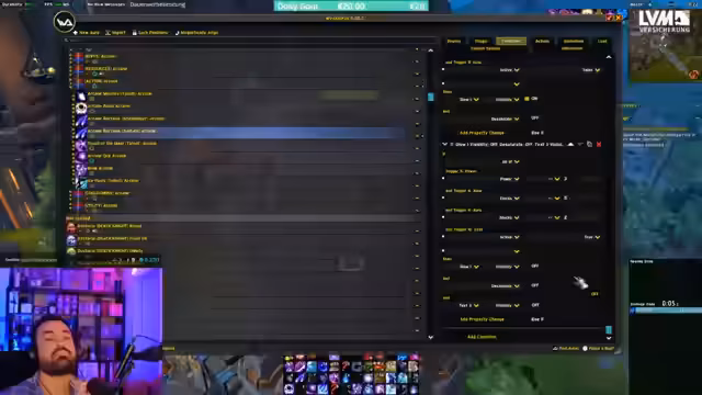 06:01:17Der Streamer stößt auf ein Problem mit seinem Addon 'Arkham Match', das Bedingungen für Fähigkeiten nicht korrekt anzeigt. Es wird der spezifische Fall 'Glorious Incandescence' bei Spellslinger beleuchtet und der fehlerhafte Code-Schnipsel gezeigt. Er versucht den Fehler zu beheben, indem er die Logik hinter dem Script neu überprüft und Bedingungen anpasst. Das Problem ist Teil eines größeren Projekts zur Automatisierung von Fähigkeitsabfolgen im Raid.