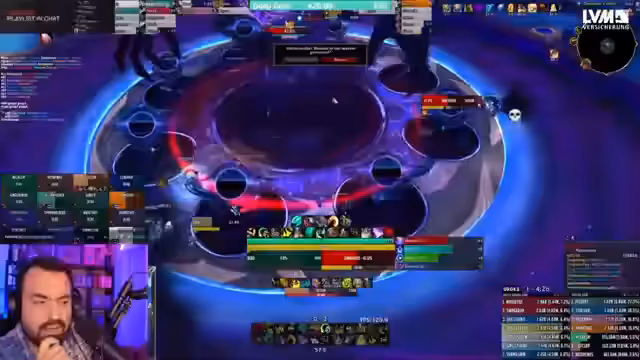 06:27:27Der Streamer vergleicht den Fortschritt verschiedener World First-Gruppen, insbesondere Echo und Liquid, die bei 59% des Bossenbosses stehen. Er äußert sich positiv über die Leistung von Liquid, die mit 20 Spielern und Bloodlust kämpft. Gleichzeitig wird der unvorhersehbare Verlauf des Events erwähnt. Auch ein Zuschauer fragt nach einer Raider.io-Funktion und der Streamer gibt eine kurze Anleitung, wie man die normalisierten Farben anpassen kann.
