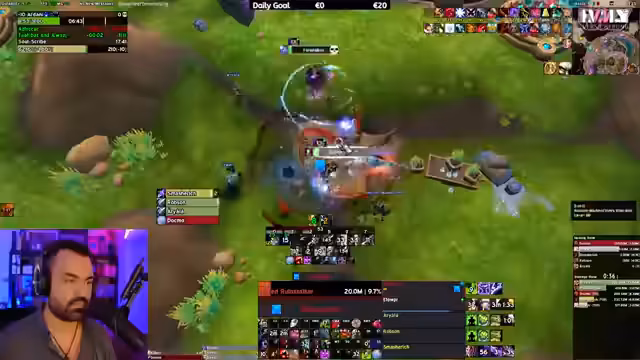 07:40:35Der Streamer drückt seinen Unmut über gemachte Keys aus und sucht nun bewusst nach einer Gruppe mit Spielern, die Ahnung haben und nicht nur One-Button-Makros verwenden. Es wird die strategische Koordination zwischen Heiler und Hunter bei der Nutzung von Bloodlust oder anderen defensiven Fähigkeiten diskutiert. Der Heiler ist für die Entscheidung verantwortlich, was die Gruppen-Dynamik und Aufgabenverteilung klar definiert.