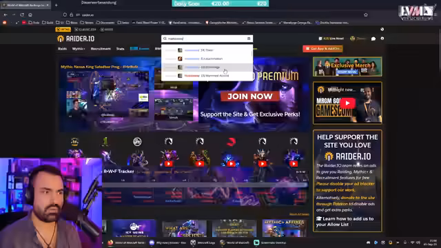04:20:05Für die Ermittlung der World Rankings in Raids hat sich die Plattform von WoW Progress zu Raider.io verlagert. Der Grund dafür ist, dass asiatische Gilden aufgrund von Datenschutzbestimmungen nicht automatisiert Daten an WoW Progress übermitteln können. Raider.io hingegen ermöglicht diesen Gilden, ihre Daten manuell hochzuladen. Zudem ist die Wettbewerbsintensität in China durch finanzielle Anreize gestiegen, was die Leistungsfähigkeit dieser Gilden deutlich erhöht hat.