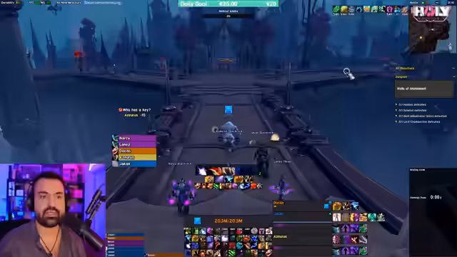 01:43:13Der Streamer plant für 18:30 Uhr einen Tazavesh-Hardmode-Run mit einer Gildengruppe. Aktuell besteht jedoch noch eine hohe Hemmschwelle bei der Community, sich für solche Runs anzumelden, da die Angst, einen depleteten Key zu produzieren und dafür kritisiert zu werden, sehr groß ist. Der Streamer möchte daher noch einige Wochen warten, bis die Community mehr Erfahrung mit den Mechaniken gesammelt hat, um den Stress und die Risiken zu minimieren und die Runs für alle angenehmer zu gestalten.