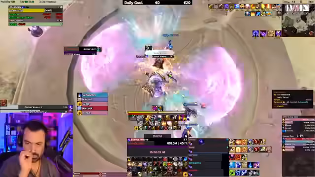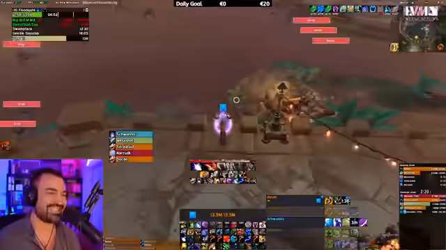 04:54:38Der Streamer beginnt mit einer persönlichen Einschätzung, dass er die Live-Analyse der Boss-Fights geniesst, um sein eigenes Gameplay zu überprüfen. Für die Zuschauer sei dies jedoch ein immenser Vorteil, da sie so den gesamten Überblick über die Situation behalten. Er gibt erste Einblicke in den aktuellen Status der Klassen und spezifische Fähigkeiten, die im Dungeon wichtig sind. Eine Diskussion entsteht über die Evadbarkeit von "Rapid Fire" und es stellt sich heraus, dass der Streamer hierüber unsicher ist und auf Community-Wissen angewiesen ist. Gleichzeitig wird ein Ratespiel über den overall-Damage zwischen den Klassen, insbesondere dem Death Knight, angekündigt, was als Channel-Wette dienen könnte.