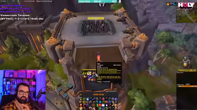 04:32:20Während der Diskussion über die Zukunft von Addons, insbesondere von Details wie Elfui, tauchen technische Probleme auf. Stream-Zuschauer berichten von Unlesbarkeit von Tabellen und Textdateien im Stream, was auf Bildschirmeinstellungen oder Probleme mit der Stream-Qualität hindeuten kann. Parallel dazu wird Elfui als potenziell wichtigstes Addon für Midnight gehypt, da es als einziges noch Reskin-Funktionen bieten soll, nachdem andere wie WeakAura 2 und L4R entfernt werden. Der Entwickler von Elfui ist im Chat anwesend und bestätigt, dass es noch keine offiziellen Statements gibt, was die Spekulationen stoppen soll.