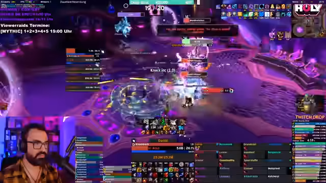 04:52:13Die Vorbereitungen für den Mythic Raid gehen in die Endphase. Der Streamer ruft die Zuschauer auf, sich in Discord und Liquid zu organisieren, um sich auf den fünf-Boss-Raid vorzubereiten. Das Überprüfen von Addons wie Northern Sky wird empfohlen, und es wird eine strukturierte Einteilung der Spieler in Tank, Heiler und DPS vorgenommen. Die hohe Nachfrage an Plätzen erfordert eine sorgfältige Auswahl, und der Streamer versucht, versprochene Plätze für die Zukunft zu sichern, was jedoch zu Verwirrung und Unzufriedenheit bei einigen Teilnehmern führt.