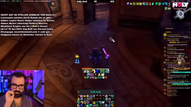 01:46:14Der Streamer gibt Tipps zum optimalen Questing in Legion Remix: Wenn man in einer Zone wie Stormheim bereits begonnen hat, aber nicht weit fortgeschritten ist (z.B. nur 10% abgeschlossen), sollte man bei Erreichen von Level 80 abbrechen und später mit einem neuen Charakter neu starten. Das ist effizienter, da man die Zone eh mit dem neuen Charakter durchlaufen muss. Dies verhindert unnötigen Zeitaufwand für geringe Fortschritte. Er betont, dass viele Spieler denken, sie müssten jede Zone zu Ende spielen, obwohl es sinnvoller ist, auf maximale Effizienz zu achten und Fokus auf Hauptquests zu legen.