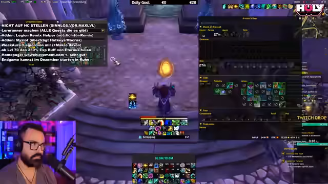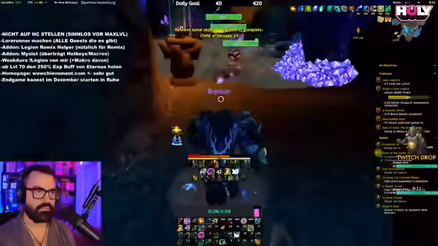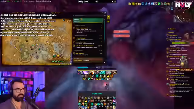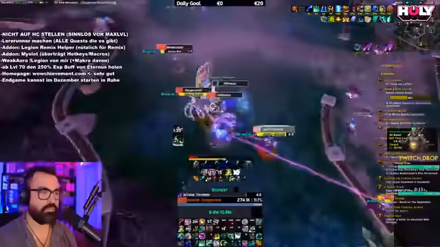 07:55:00Fortgesetzte Quests in Legion Remix werden diskutiert, mit Problemen im HC-Modus und Überlegungen, ob der Wechsel sinnvoll ist. Der Streamer plant, Legion Remix für einen Monat pausieren und dann wieder aufzunehmen, sobald andere Spieler fortgeschritten sind. Ein zentrales Thema ist die Ankündigung für den nächsten Tag, Samstag: die Durchführung weiterer Mythic Raids mit der Community und die Fortsetzung der Legion Remix-Aktivitäten. Abschließend wird der Stream mit einem Ausblick auf die kommenden Aktivitäten und einem Dank an die Zuschauer beendet, einschließlich der Erinnerung, zu folgen.
