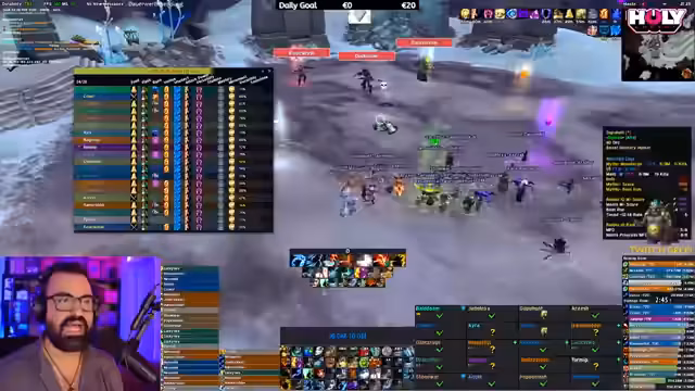 07:01:45Die aktuelle Taktik im Raid wird stark kritisiert. Alle sammeln sich in der Mitte, was als dumm und ineffektiv beschrieben wird. Zudem werden technische Probleme wie ein hoher Ping und buggy Anzeigen im Chat erwähnt, die die Koordination erschweren. Es werden auch die generellen Server-Probleme in Legion Remix angesprochen, die das Gameplay beeinträchtigen, und die Vorteile von Add-ons zur Automatisierung von Aufgaben werden hervorgehoben.