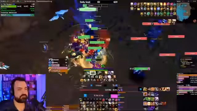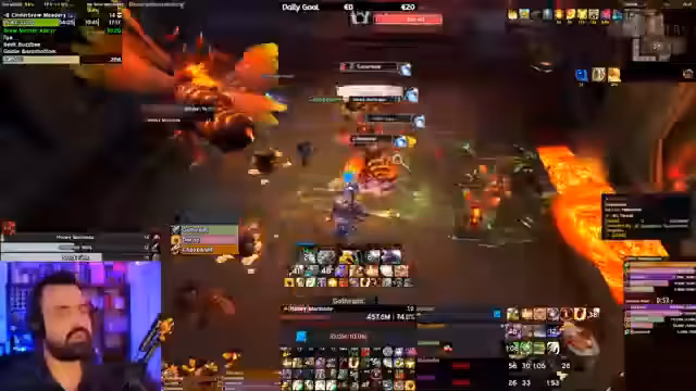 12:48:49Aufgrund von Disconnects und nicht erschienenen Spielern wird aktiv umgestellt. Es werden Ersatzspieler eingeladen und die Rollen im Raid neu verteilt, beispielsweise von einem Evoker als Schadensklassen zu einem als Heiler. Gleichzeitig wird der weitere Plan des Raids besprochen, um den Zeitplan einzuhalten. Der Streamer bemerkt, dass es sehr anstrengend ist, gleichzeitig auf den Spielablauf, die Kommunikation und die Managementaufgaben zu achten.