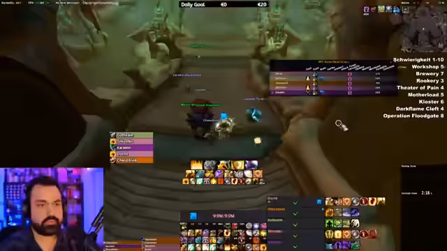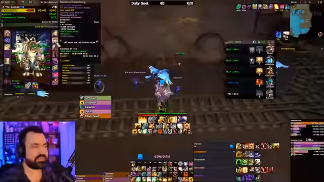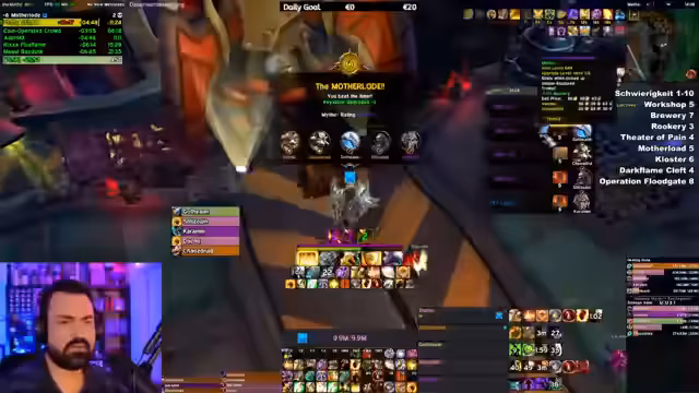 09:06:40Ein letzter Dungeon wird absolviert, ein sogenannter 'Motherload', der besonders viele Items droppt lässt. Der Streamer ist beeindruckt von der Menge an Beute, die die Gruppe erhält, und erwähnt ein Item-Glück in der aktuellen Woche. Nach Abschluss des Dungeons plant man die nächsten Aktionen: eine Pause, bevor gegen Abend mit dem Raid begonnen wird. Währenddessen gibt es Diskussionen über einen ungenutzten Port in der neuen Zone Dornogal und dessen Nutzen.