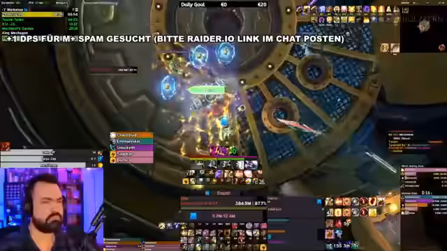 13:02:02Die Stimmung unter den Spielern ist entspannt und es kommt zu humorvollen und teils beleidigenden Kommentaren, die im Raid-Chat geteilt werden. Es werden persönliche Anekdoten ausgetauscht, wie ein Vorfall mit Schattenboxmaschinen in Hamburg. Die Atmosphäre ist locker und selbstironisch, auch wenn die Mechaniken des Dungeons weiterhin volle Konzentration erfordern.