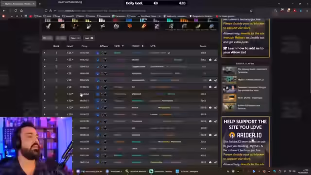 10:57:51Der Streamer klärt technische Fragen zur eigenen Benutzeroberfläche, insbesondere die Plater-Addon-Konfiguration im Vergleich zu WeakAuras und Big Wigs. Hauptthema ist die Analyse der neuen Dungeons der Season. Kloster wird als extrem hart eingestuft und Rookery als alternative Option genannt. Der Streamer sucht aktiv nach World of Logs (WotL) von Spielern mit hohen Plus-Schlüsseln, um sich eine bessere Einschätzung zu bilden.