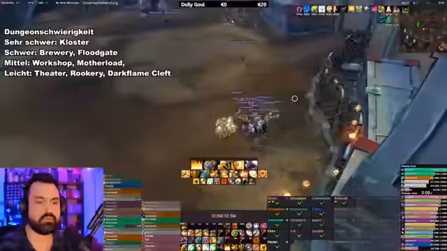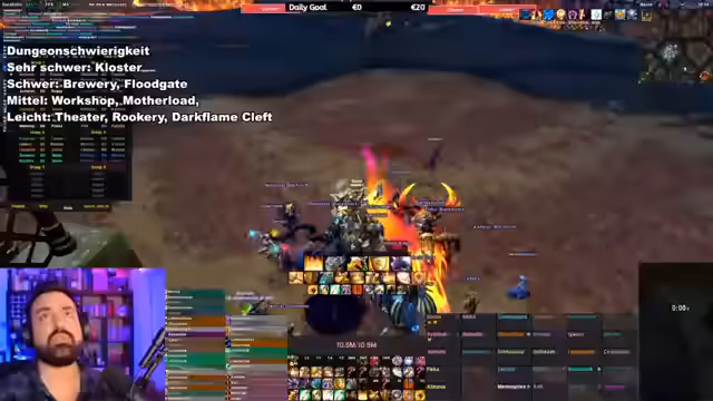 00:01:06Zu Beginn des Streams geht es darum, Gruppen für den gesamten Tag für M+ Dungeons zusammenzustellen. Es wird geplant, eine Gruppe für einen 7er Schlüssel zu starten und eine weitere für einen 6er Schlüssel. Streamer erwähnt, dass eine DD-Klasse gesucht wird und ein weiterer Platz für einen anderen Spieler besteht. Der Streamer vergleicht das Spiel mit Dungeon-Bot-Slices und stellt fest, dass alles direkt und ohne Port geht. Er erwähnt auch einen möglichen Raid direkt im Anschluss an die M+-Dungeons.