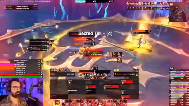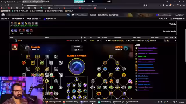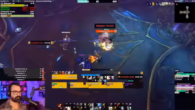 07:49:43Ein Nutzer braucht Hilfe bei der Spielweise des Devourers. Der Streamer versucht, die Logs zu analysieren und festzustellen, dass der Nutzer zu langsam ist und Casts abbricht. Er erklärt, dass es beim Devourer darauf ankommt, schnell zu agieren und nicht abzubrechen. Der Nutzer erwähnt, dass er Devourer nicht spielen kann, weil es kein Tauren ist. Der Streamer erklärt, dass er Devourer aus Community-Gründen nicht spielt, um nicht mehr zu viele 'Wannabe-Devourers' zu influenzieren.